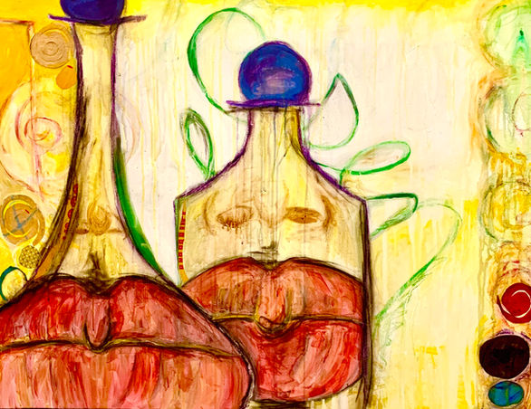 While taking a painting class one day, the instructor told us to paint a picture of a bottle… I found the perfect one… while painting I decided to add a few elements to it and it ended up with lips inside… (I’m a sucker for lips, especially if they look like mine)… then my spirit spoke to me and, on the canvas, I begin to write the words, BE OPEN…